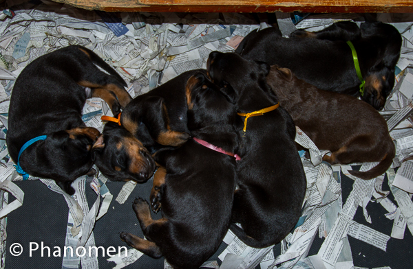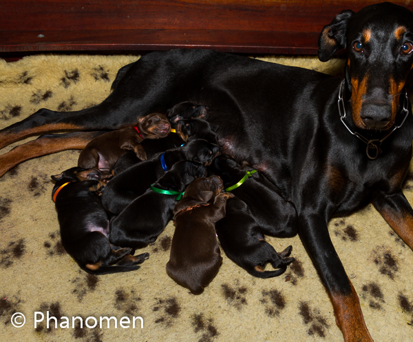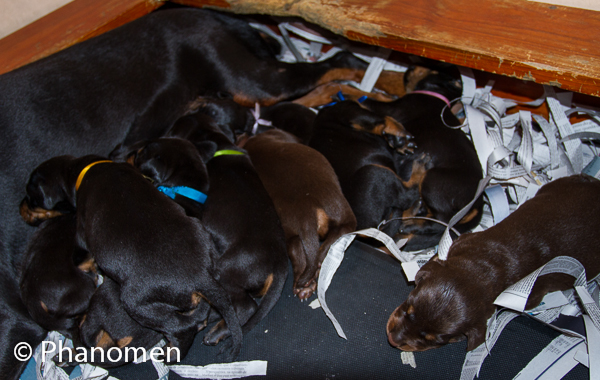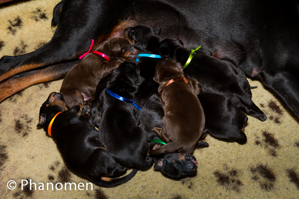 5 machos pretos, 1 macho marrom, 3 fêmeas pretas